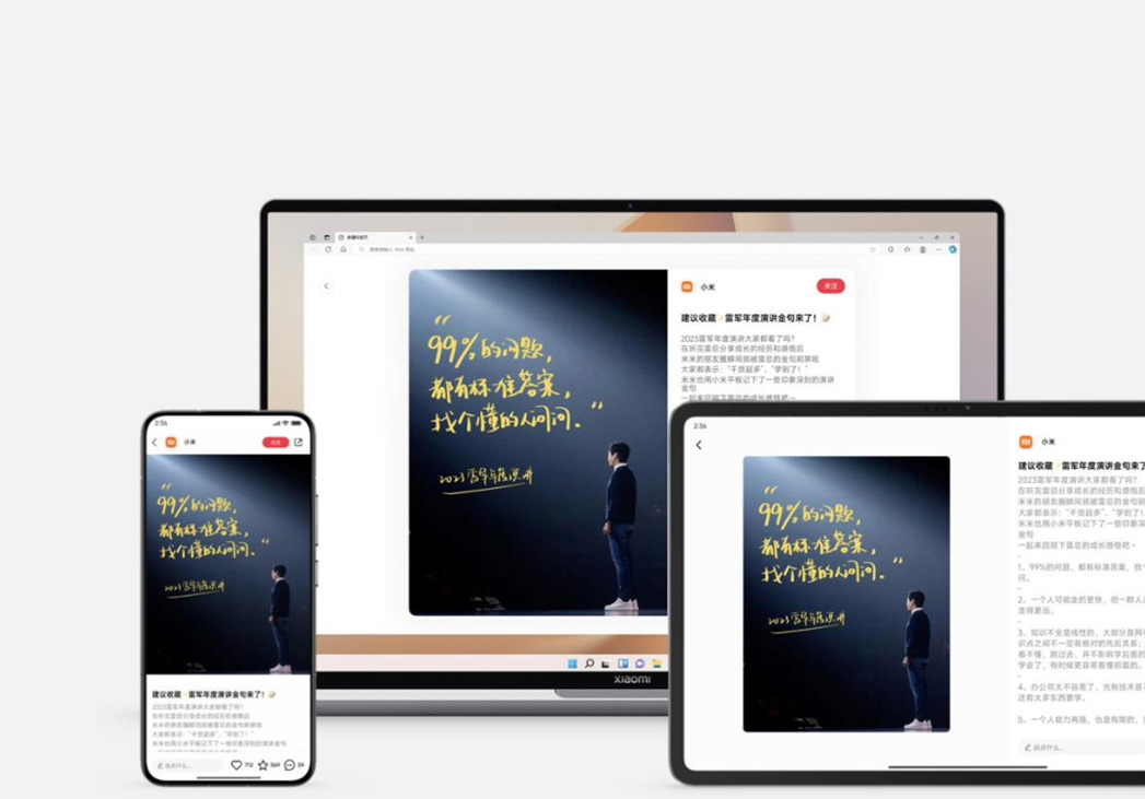 Sự liên kết liền mạch giữa nhiều thiết bị cùng sử dụng HyperOS giúp người dùng dễ dàng thao tác và đem lại trải nghiệm tuyệt vời hơn. Hệ điều hành cho phép sử dụng phần cứng của nhiều thiết bị khác nhau để thực hiện một công việc xuyên suốt.