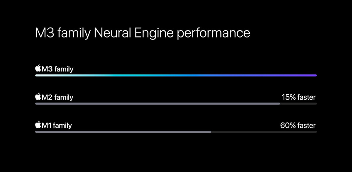Nhờ vào tiến trình 3nm mới, những con SoC Apple M3 series đem lại hiệu năng tốt hơn và hiệu quả năng lượng tốt hơn, đó là điều đương nhiên so với tiến trình cũ, ngoài ra, nó cũng giúp tăng mật độ bóng bán dẫn trên những con chip này, cụ thể thì Apple M3 sẽ có 25 tỷ bóng bán dẫn, Apple M3 Pro sẽ có 37 tỷ bóng bán dẫn và Apple M3 Max là 92 tỷ bóng.