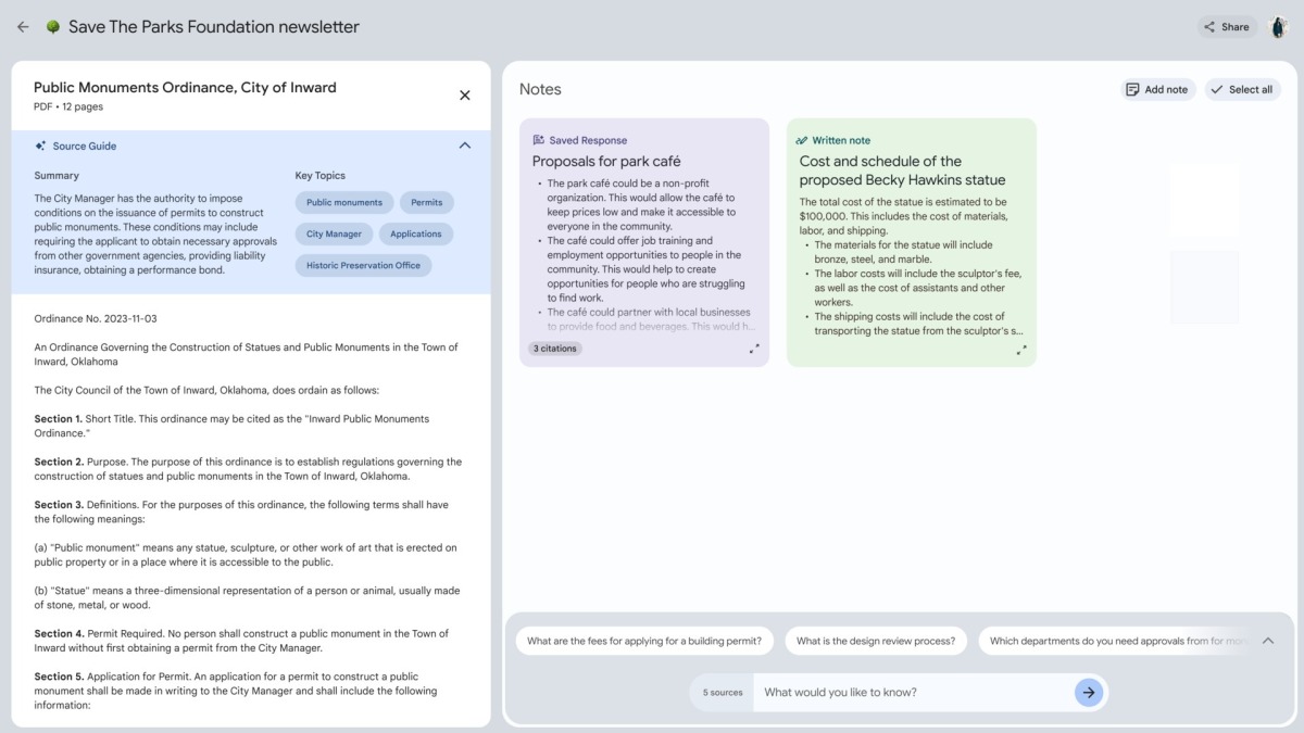 - Biến câu trả lời thành ghi chú: Giờ đây, người dùng có thể lưu câu trả lời NotebookLM dưới dạng ghi chú để có thể ghim xuống để xem sau.