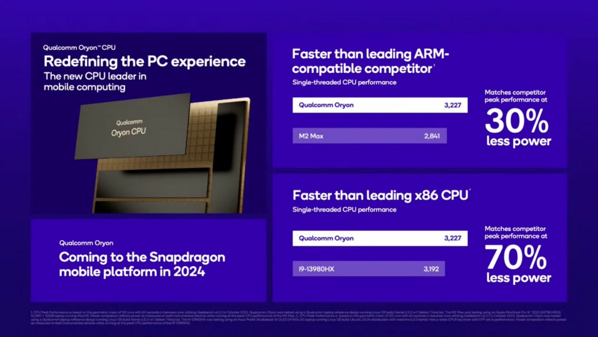 Tại Snapdragon Summits 2023 diễn ra vào tháng 10, Qualcomm đã xác nhận các thông tin đầu tiên về Snapdragon 8 Gen 4, đây là chipset di động cao cấp đầu tiên sử dụng lõi CPU Oryon tùy chỉnh được phát triển bởi nhóm Nuvia mà Qualcomm đã mua lại vài năm trước.