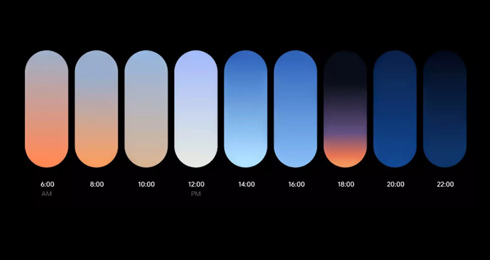 Hệ thống màu sắc Aquamorphic có thể tự động điều chỉnh theo trạng thái, thời gian và nội dung trên màn hình của thiết bị. Màu sắc được kết hợp thông minh với bối cảnh để mang lại trải nghiệm trực quan hơn. Thiết kế Aqua Dynamics mới đơn giản hóa các tương tác, mở rộng các chế độ truyền thống như bong bóng và bảng điều khiển sang Thanh trạng thái.