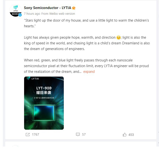 Sony hôm nay đã âm thầm trình làng cảm biến máy ảnh mới nhất của mình là Lytia LYT-900 mà không có sự kiện chính thức nào được tổ chức, chỉ có tài khoản chính thức của Sony Lytia đăng tải trên Weibo cung cấp một vài thông số kỹ thuật của cảm biến mới.