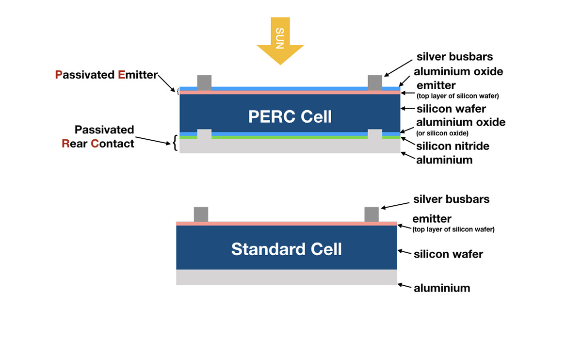Công nghệ PERC về cơ bản vẫn sử dụng một tấm solar cell truyền thống, nhưng được bổ sung một lớp vào mặt sau của tế bào được gọi là lớp thụ động.