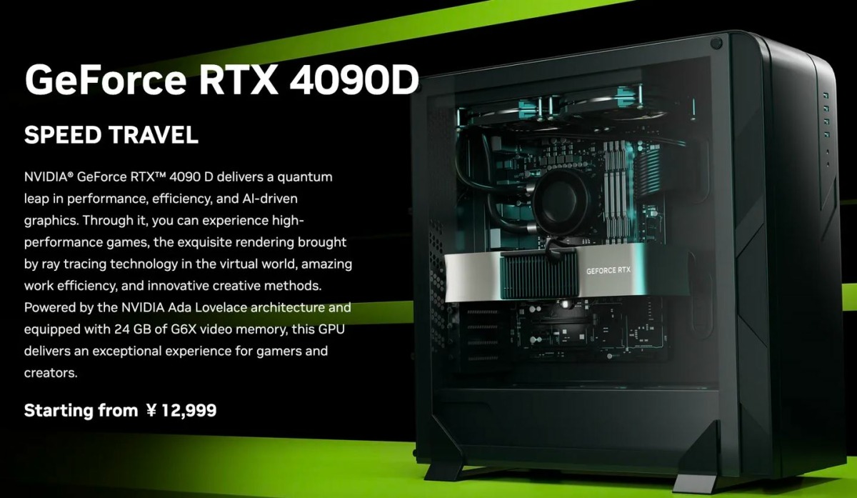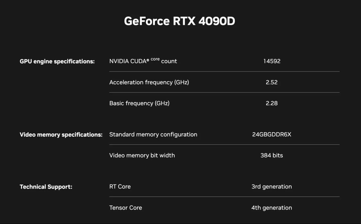 Trên trang web Nvidia phiên bản tiếng Trung, nhà sản xuất chip giới thiệu RTX 4090D: một GPU kém mạnh hơn so với RTX 4090 đang được bán ở các thị trường khác.