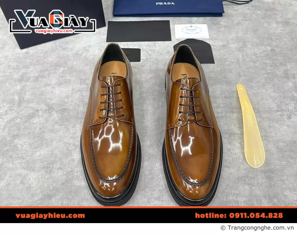 Mẫu giày tây Prada màu nâu da bóng viền bo nổi