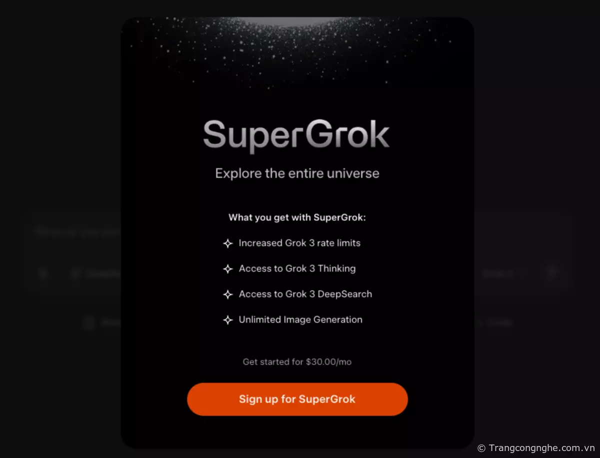 Với tài khoản trả phí, người dùng có thể mua gói độc lập với giá 30 USD/tháng hoặc đăng ký gói Premium+ của X với giá 40 USD/tháng. Tài khoản miễn phí sẽ bị giới hạn số lần truy vấn (5 lần/ngày) và không có quyền truy cập vào tính năng Brain (hỗ trợ lập luận đa bước).