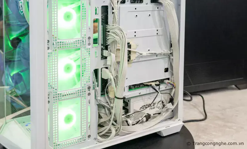 Dự án Project Zero của MSI mang đặc điểm đặc biệt khi tất cả các chân cắm nguồn và cổng kết nối được đặt phía sau, cho phép chúng ta đi dây ra phía sau và tạo nên một tổng thể hài hòa và thẩm mỹ trong quá trình ráp máy. Tuy nhiên, để tận dụng tính năng này, cần có một mẫu thùng máy tính được thiết kế đặc biệt để hỗ trợ Project Zero và cung cấp không gian trống phía sau cho việc đi dây.