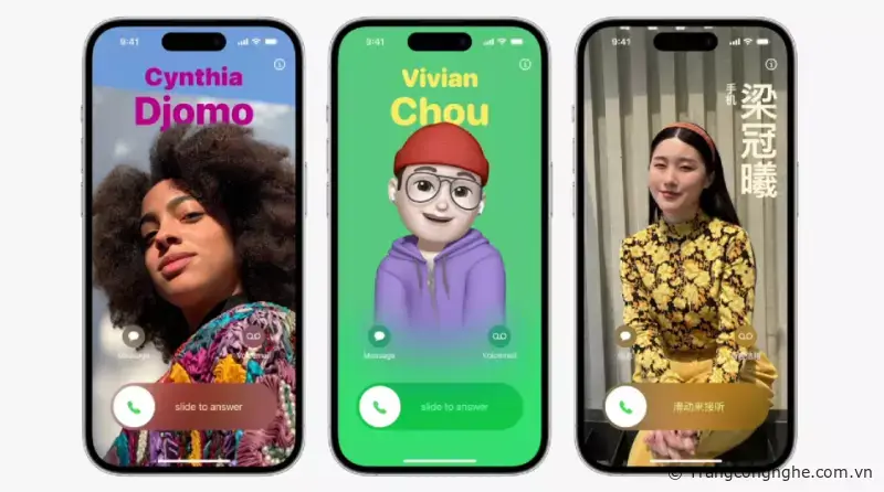 iOS 17 cho phép người dùng dễ dàng thay đổi nền cuộc gọi bằng ảnh của người thân hoặc bạn bè. Tên người gọi cũng được tạo điểm nhấn với font chữ lớn và sự linh hoạt trong việc thay đổi màu sắc. Đặc biệt, Apple đã bổ sung thêm nhiều font chữ mới, bao gồm cả các font tương thích với các ngôn ngữ ngoài Latin như tiếng Trung và tiếng Hàn.