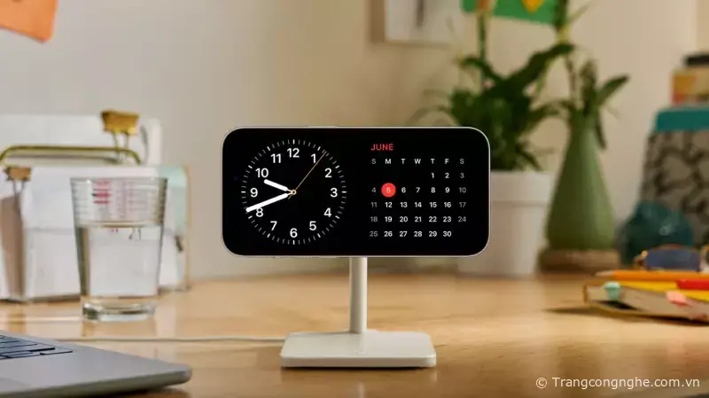 Standby cung cấp một chế độ xem mới cho phép hiển thị thời gian, tiện ích và các thông tin khác khi iPhone được đặt nằm ngang. Điều này có nghĩa là bạn có thể biến một chiếc iPhone thành một "đèn ngủ" khi đặt nó lên một chiếc giá đỡ MagSafe. Ngoài ra, Standby còn có khả năng tự động chuyển sang giao diện nền đen khi được kích hoạt vào ban đêm.