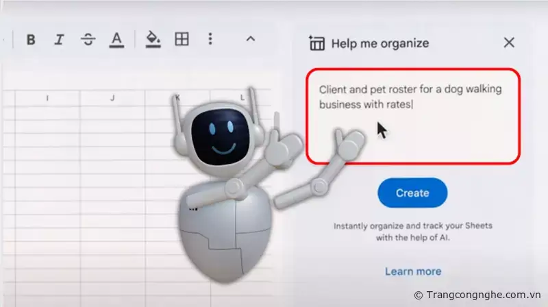"Help me Organize" cho phép người dùng thử nghiệm tính năng mới này thông qua Workspace Labs. Khi được kích hoạt, người dùng sẽ thấy một bảng điều khiển xuất hiện bên phải màn hình. Tại đây, họ có thể nhập các lệnh liên quan đến Google Sheets để yêu cầu tạo ra các mẫu bảng tự động và tổ chức dữ liệu.