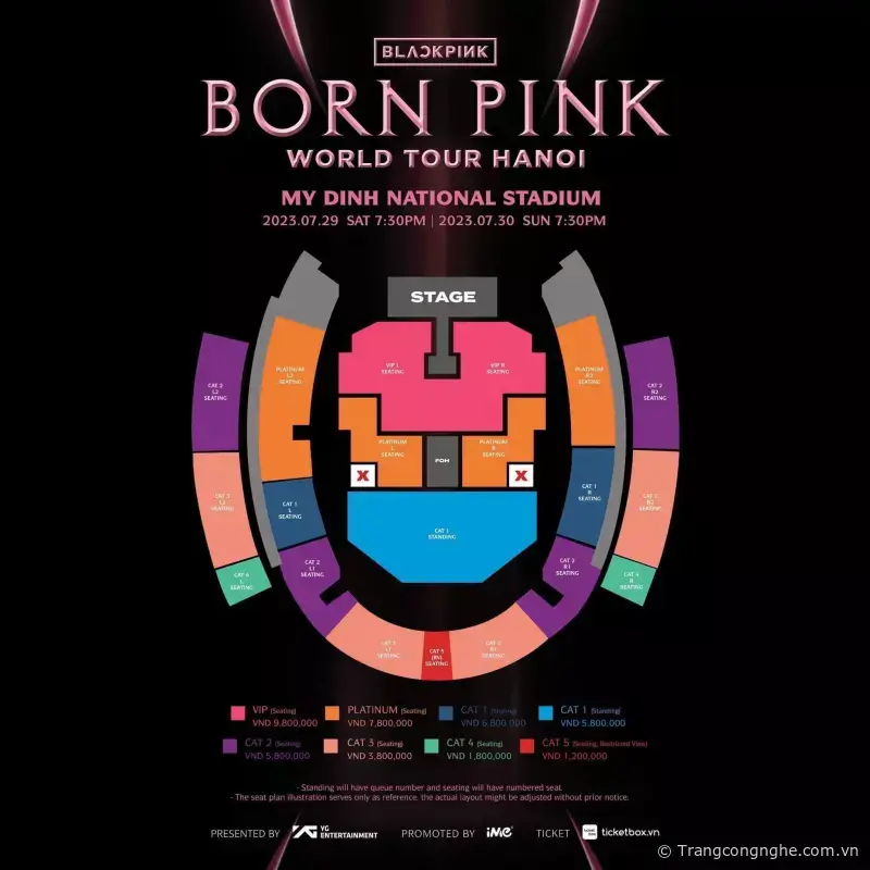 SƠ ĐỒ & GIÁ VÉ BORN PINK WORLD TOUR HANOI đã chính thức được công bố