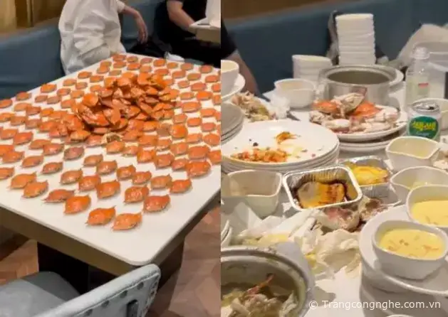 Mới đây, một video đã gây sốc trên MXH Trung Quốc khi ghi lại cảnh một nhóm 7 người gồm 6 nam giới và 1 phụ nữ đi ăn buffet tại một nhà hàng ở Thượng Hải. Theo đoạn video dài gần 4 tiếng quay lại buổi ăn của nhóm khách này, họ đã tiêu thụ hết tổng cộng 300 con cua, 80 cốc tráng miệng cao lương xoài, 50 quả sầu riêng và vô số các đĩa tôm, cá hồi.