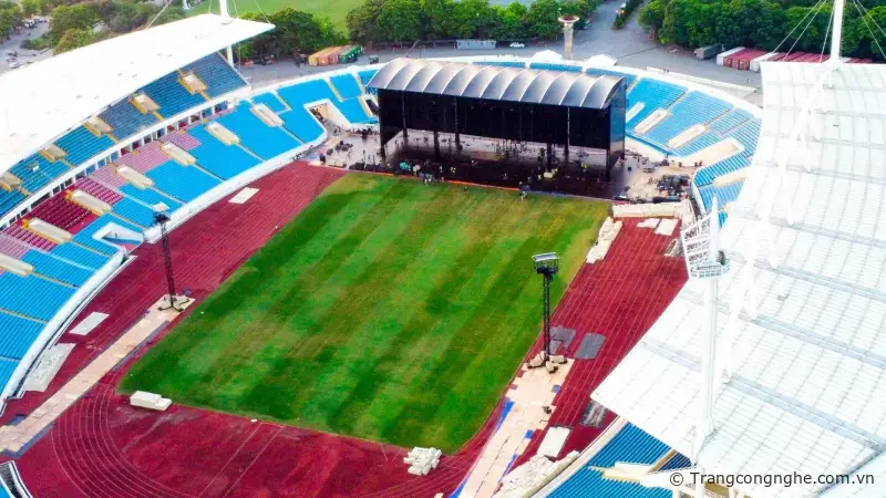 Sân khấu đang được hoàn thiện (Ảnh: Cafef)