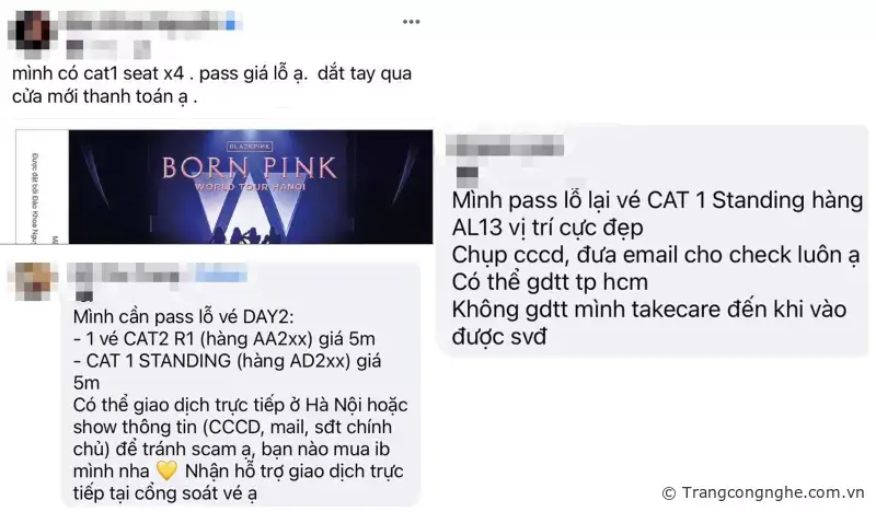 Bên cạnh đó. trên các hội nhóm “đu” concert, không ít người vẫn rao tìm chủ nhân các hạng vé từ 5,8 triệu đồng đến 7,8 triệu đồng và hạng VIP. Người ôm vé lòng nóng như lửa đốt vì mãi chưa có người “chốt” dù đã hạ kịch sàn, người mua vẫn trong tâm thế đợi sát ngày diễn để ép giá hời.