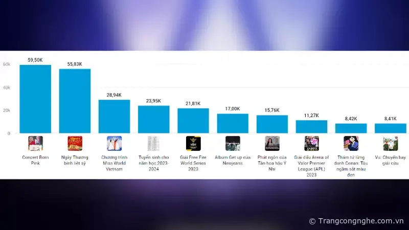 Chủ đề liên quan đến Concert Born Pink đạt chỉ số phân tích lớn nhất với tổng lượng thảo luận đạt 74,11K và tương tác đạt 443,91K theo thống kê của YouNet.