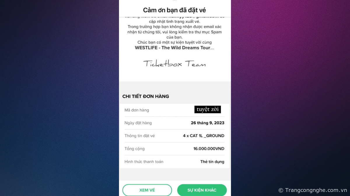 Bước 5: Chờ email xác nhận kèm vé điện tử từ Ticketbox.