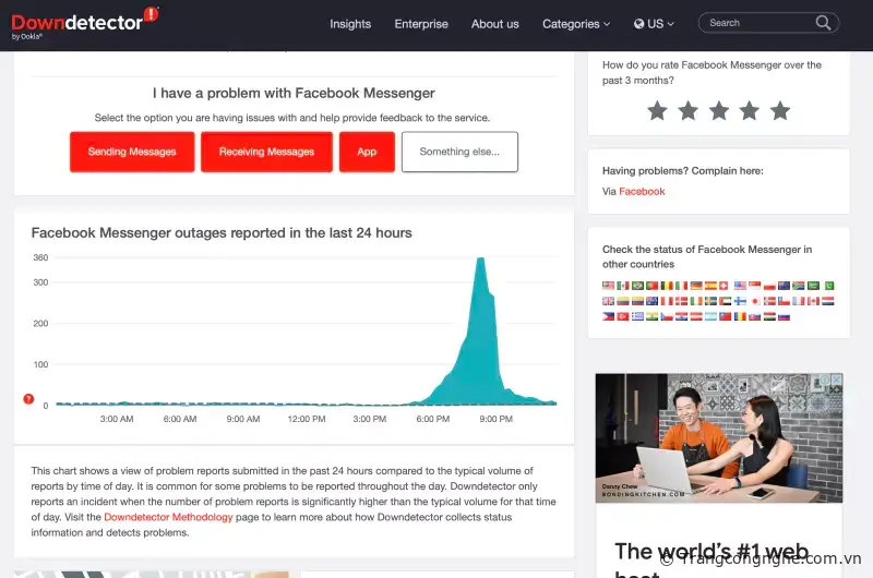 Trang web DownDetector (https://downdetector.com/), nơi theo dõi các sự cố trực tuyến, ghi nhận lượng người dùng báo cáo gặp sự cố khi sử dụng Messenger tăng đột biến chỉ sau vài phút kể từ khi xuất hiện những phản hồi đầu tiên. Điều này cho thấy sự cố xảy ra trên quy mô lớn, không chỉ ở Việt Nam mà còn ở nhiều nước khác. Sự cố này cũng cho thấy Messenger là ứng dụng trò chuyện được sử dụng rộng rãi trong giao tiếp hàng ngày của người dùng.