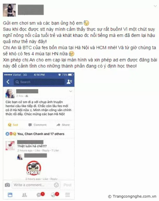Được biết lễ hội cosplay festival được tổ chức vào 4 mùa Xuân, Hạ Thu, Đông vốn là truyền thống của các bạn trẻ đam mê văn hóa cosplay trên cả nước. Cứ qua 1 mùa, các cosplayers lại ngóng chờ một lễ hội mới dành cho riêng họ, nơi mà họ có thể gặp gỡ những người bạn cùng đam mê, cùng hóa thân vào những nhân vật mình yêu thích. Tuy nhiên có thể sắp tới những cosplayers tại thủ đô Hà Nội sẽ phải ngậm ngùi chia tay với cosplay festival, chỉ vì những “con sâu làm rầu nồi canh”. Nếu điều này là thật, thì chỉ vì 1 cá nhân làm những hành động phản cảm mà cả cộng đồng cosplay và otaku cùng phải trả oan một cái giá quá đắt.