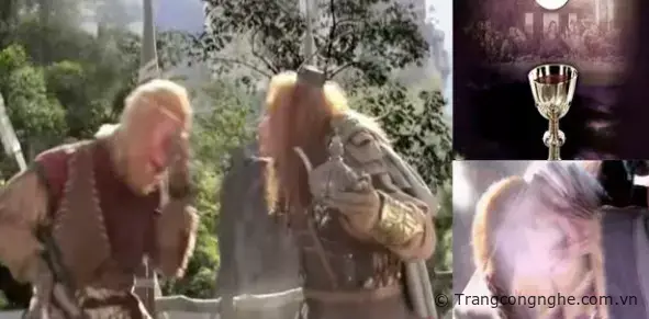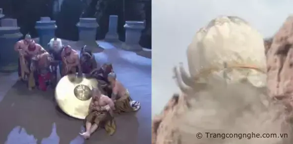 Tôn Ngộ Không bị nhốt trong Não Bạt Vàng (trái), Túi Hậu Thiên (phải)
