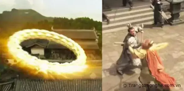 Tôn Ngộ Không bị chiếc vòng Kim Cang Trát đánh trúng đầu trong lúc đang giao chiến với Nhị Lang Thần.