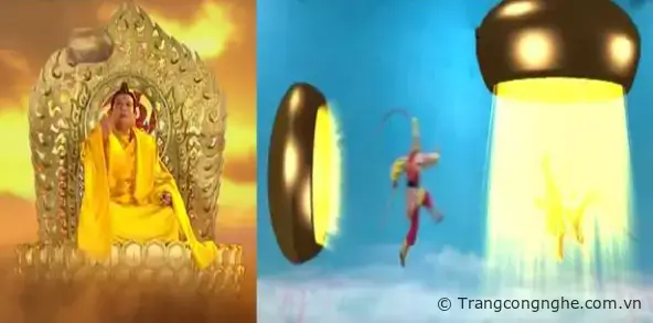 Phật tổ Như Lai tung chiếc bát thu phục Tôn Ngộ Không giả.