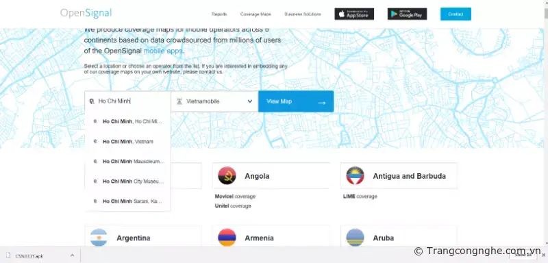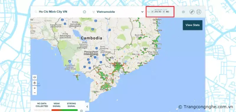 Bạn có thể tùy chọn việc xem độ phủ sóng với hệ thống băng tần 2G/3G hoặc 4G ở phần "Network Type"