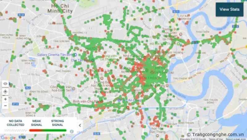 Kéo đến khu vực Quận (hoặc phường, xã) bạn muốn kiểm tra sóng. Màu xanh lá sẽ đại diện cho tín hiệu mạnh, còn đỏ là yếu.