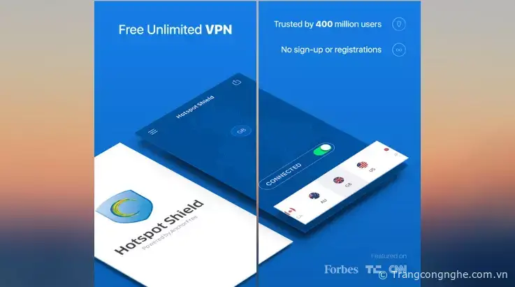 Hotspot Shield là một phần mềm cung cấp dịch vụ VPN miễn phí, giúp bạn đảm bảo sự riêng tư và truy cập mạng internet tốt hơn. Ứng dụng này sử dụng các thuật toán để mã hóa dữ liệu và che đậy địa chỉ IP của bạn khi truy cập mạng. Điều đặc biệt hơn là Hotspot Shield không giới hạn băng thông dịch vụ. Nếu bạn muốn một số dịch vụ cao cấp hơn như thay đổi vị trí, streaming không giới hạn,...thì có thể nâng cấp lên gói Elite.