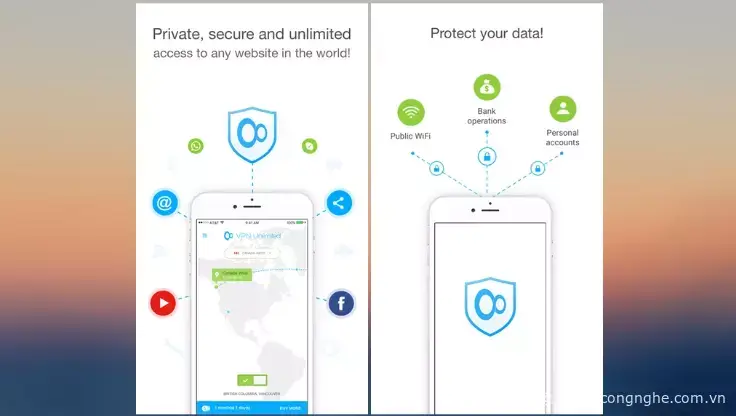 VPN Unlimited là ứng dụng có thể mở khóa toàn bộ trang web, luôn luôn bảo vệ bạn khi trực tuyến và mã hóa toàn bộ lưu lượng dữ liệu trên trình duyệt của bạn thông qua proxy ở một đất nước khác. VPN Unlimited còn giúp bảo vệ sự riêng tư và thông tin cá nhân, giúp phá vỡ các rào cản địa lý, cho phép bạn xem tất cả các nội dung mà thường xuyên bị chặn.