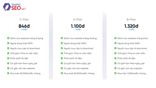 Bảng giá traffic user tại TrafficSEO :