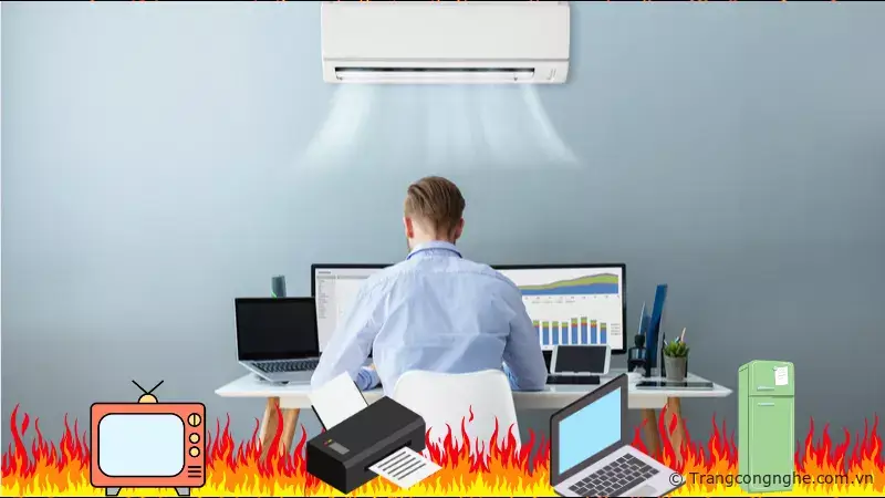 Các thiết bị tỏa nhiệt như: tivi, bóng đèn, laptop, máy in,…đều là những thiết bị tiêu thụ năng lượng rất lớn. Tuy nhiên, chúng ta thường không nhận ra mức độ toả nhiệt của thiết bị và để hoạt động suốt ngày đêm, khiến phòng trở nên nóng bức và tiêu tốn rất nhiều điện năng.