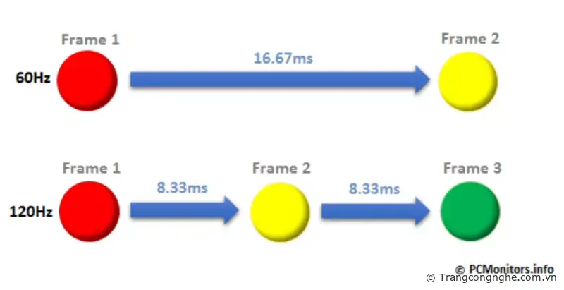 Ví dụ, ở mức 60Hz, màn hình sẽ theo dõi tương tác ngón tay của bạn mỗi 16.6 mili giây, nhưng ở mức 120Hz, con số này chỉ còn ½ : 8.3 mili giây, màn hình sẽ theo dõi tương tác từ ngón tay 1 lần. Một màn hình có tần số quét tương tác (touch sample rate) cao (120Hz), có nghĩa màn hình cảm ứng sẽ nhạy hơn và bắt đầu dựng (render) những khung hình nhanh hơn, chỉ sau mỗi 8.3 mili giây.