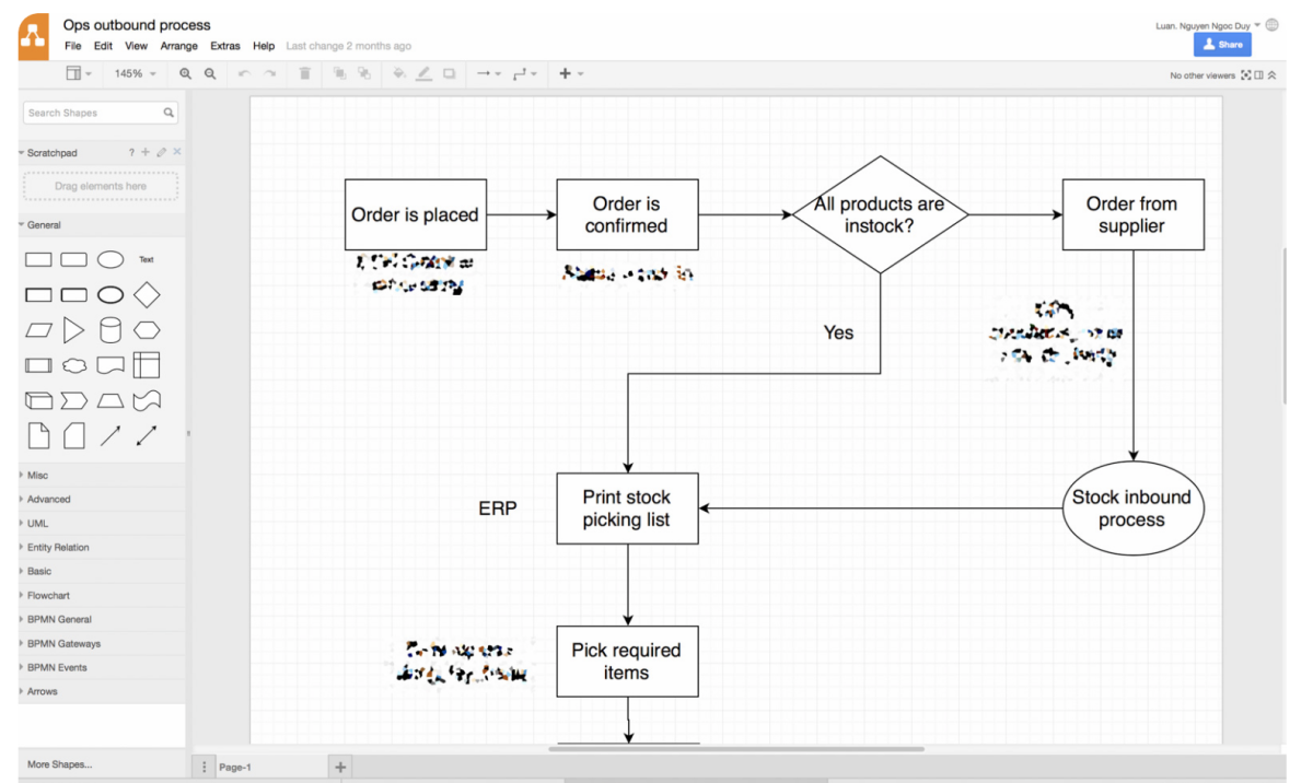 Bên cạnh đó, Draw.io còn hỗ trợ thư viện mẫu sẵn phong phú để người dùng có thể nhanh chóng bắt đầu vẽ mà không phải tự thiết kế từ đầu từng chi tiết. Ngoài ra, người dùng còn có thể dễ dàng lưu trữ và chia sẻ sơ đồ lên các nền tảng như Google Drive hay tải về máy tính dưới định dạng ảnh, PDF hay vector SVG.