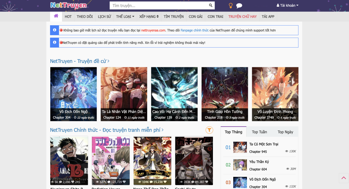Website chính thức (cập nhật 08/2024): https://nettruyenaa.com hoặc https://nettruyenviet.com