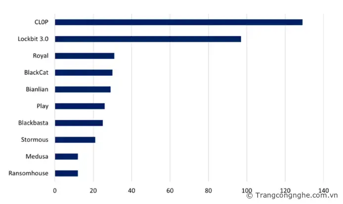 Nhà cung cấp dịch vụ ransomware CLOp (Nga), tác nhân đe dọa tích cực nhất chiếm 28% trong tổng số lượng các nạn nhân bị tấn công tống tiền của tháng 3.NCC Group cho biết, đây cũng là lần đầu tiên CLOp trở thành RaaS hàng đầu cho các nhóm tội phạm mạng.