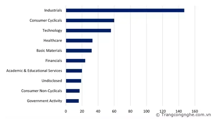 Công nghiệp cho đến nay là lĩnh vực bị tấn công nhiều nhất vào tháng 2 với 147 cuộc, chiếm 32% các cuộc tấn công. Lĩnh vực hàng tiêu dùng theo chu kỳ là mục tiêu bị tấn công nhiều thứ hai với 60 cuộc tấn công (13%), tiếp theo là Công nghệ, giành lại vị trí thứ ba với 56 cuộc tấn công (12%).