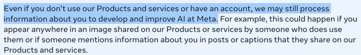 Động thái này lại dấy lên làn sóng phản ứng từ phía người dùng về vấn đề bảo mật dữ liệu cá nhân và quyền riêng tư trên các nền tảng mạng xã hội. Meta cho biết họ sẽ thu thập và sử dụng dữ liệu người dùng hợp pháp, nhằm mục tiêu phát triển những công nghệ tốt hơn phục vụ cho người dùng. Tuy nhiên, nhiều ý kiến cho rằng đây vẫn tiềm ẩn nguy cơ ảnh hưởng đến quyền riêng tư của các cá nhân trong khi luật pháp về bảo vệ dữ liệu cá nhân của một số quốc gia chưa được hoàn thiện.