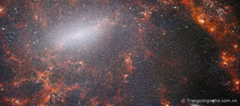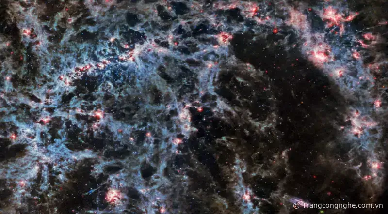 Theo trang Gizmodo, hình ảnh được tạo ra bởi cảm biến MIRI cho chúng ta quan sát về cấu trúc của thiên hà và các bong bóng khí phát sáng đại diện cho các ngôi sao mới hình thành.