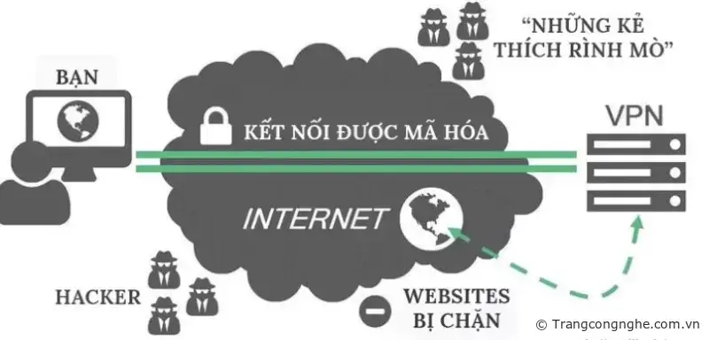 Khi bạn sử dụng VPN và duyệt web, máy tính của bạn sẽ liên lạc với trang web thông qua kết nối được mã hóa bởi VPN. VPN chuyển tiếp yêu cầu cho bạn và chuyển tiếp phản hồi từ trang web trở lại thông qua kết nối an toàn.