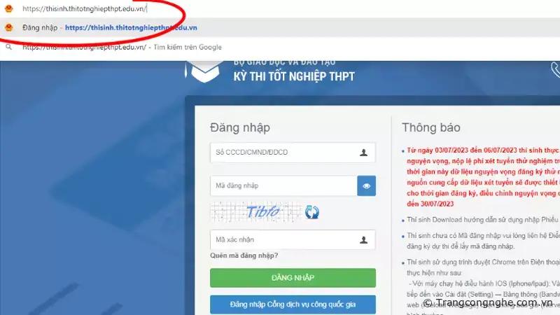 Bước 1: Truy cập vào đường link https://thisinh.thitotnghiepthpt.edu.vn/ hoặc trên Cổng dịch vụ công quốc gia