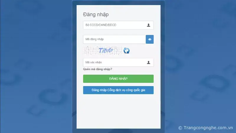 Bước 2: Thí sinh tiến hành nhập thông tin Số CCCD/CMND và Mã đăng nhập đã được cấp, nhập Mã xác nhận để tiến hành Đăng nhập