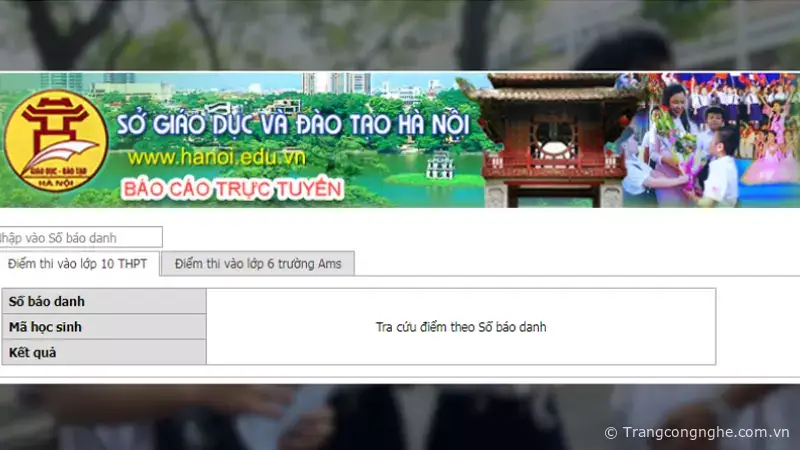 Ví dụ: Thí sinh đăng ký dự thi tại Hà Nội truy cập link website tra cứu điểm của Sở giáo dục và Đào tạo Hà Nội tại https://tracuu.hanoi.edu.vn/
