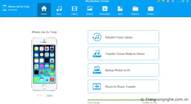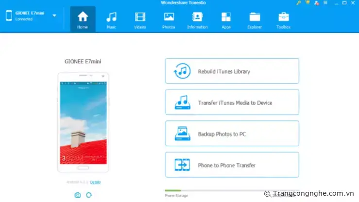 Giao diện chính của TunesGo khá trực quan và dễ sử dụng