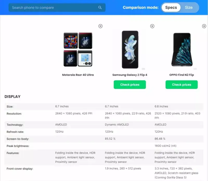 Thậm chí, bạn có thể so sánh kích thước thực tế của từng sản phẩm bằng cách bấm vào Size trên trang cấu hình sản phẩm. Trang chủ chính thức : https://www.phonearena.com