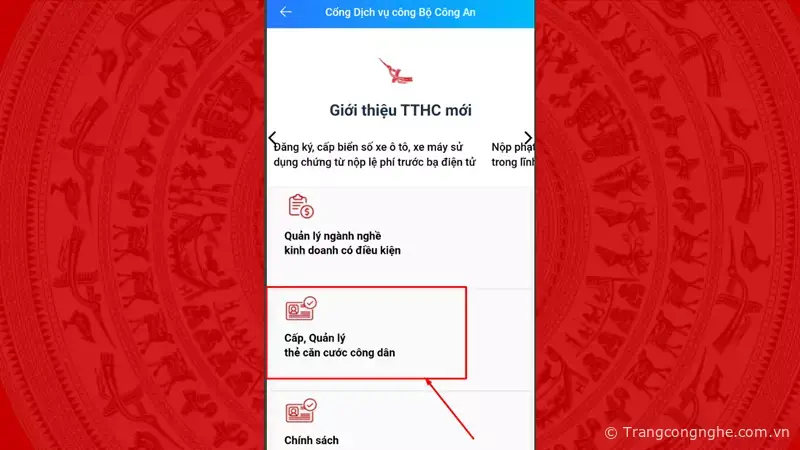 Bước 3: Tiếp theo, bạn lựa chọn Cấp, Quản lý thẻ căn cước công dân.