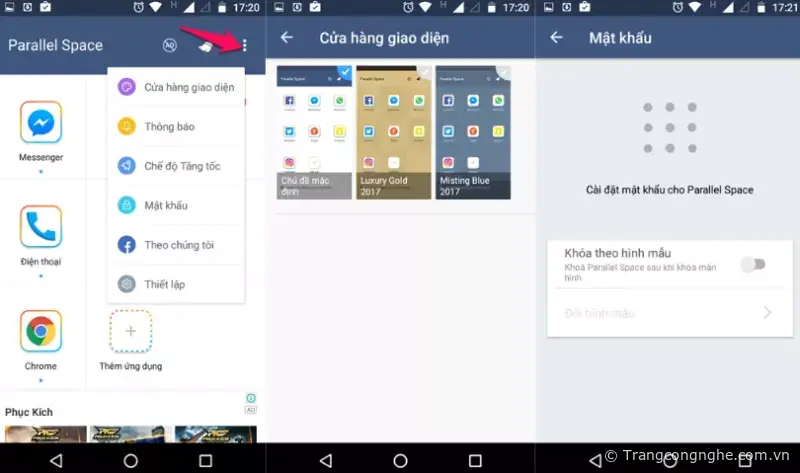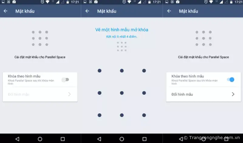 Nhằm tăng khả năng bảo vệ sự riêng tư cho các ứng dụng trong Parallel Space, bạn nên tạo mật khẩu mở khóa bằng 'mẫu hình'.