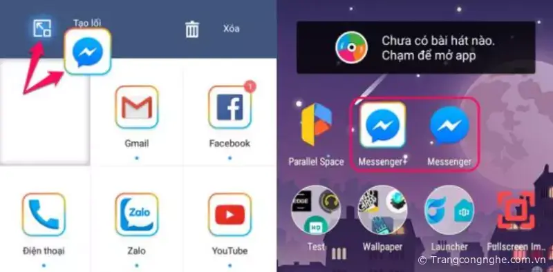Nếu muốn dùng nhanh các nhân bản giống ứng dụng gốc, bạn có thể tạo lối tắt ngoài màn hình chính bằng cách chạm và giữ một icon trong Parallel Space > kéo vào ô 'Tạo lối tắt' ở góc trên bên trái màn hình.