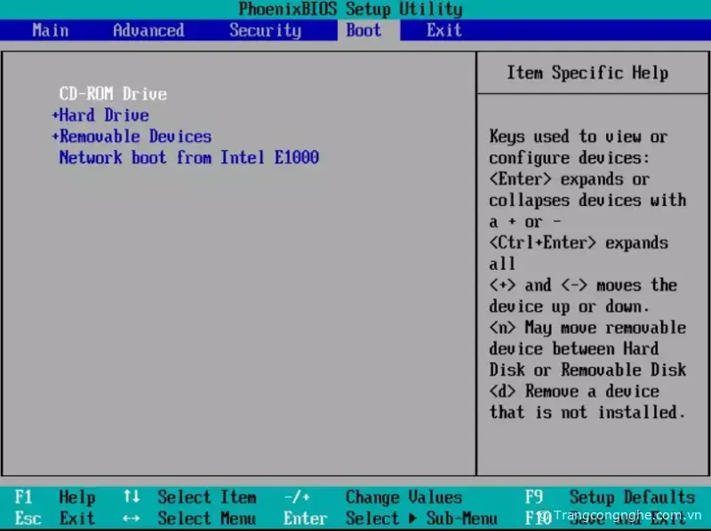 Sau khi vào được giao diện BIOS, bạn sẽ tìm đến phần chọn thứ tự khởi động load hệ điều hành từ USB. Để có thể chỉnh BIOS để boot từ USB hoặc DVD/CD nhằm kích hoạt tính năng boot vào hệ điều hành từ USB, CD/DVD đầu tiên, thực hiện hiện theo bài viết Cách thiết lập BIOS để boot từ USB/CD/DVD, ổ cứng ngoài.