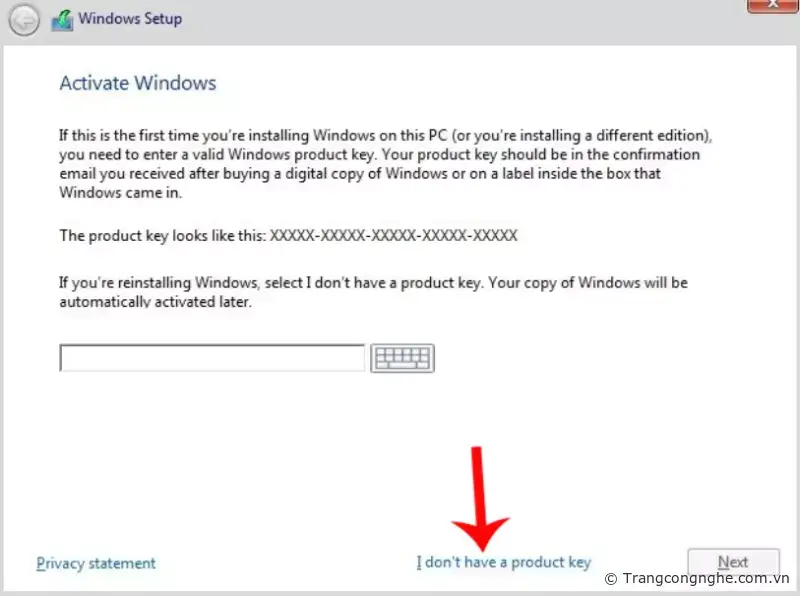 Chuyển sang giao diện mới nhấn vào tùy chọn bên dưới I don’t have a product key.