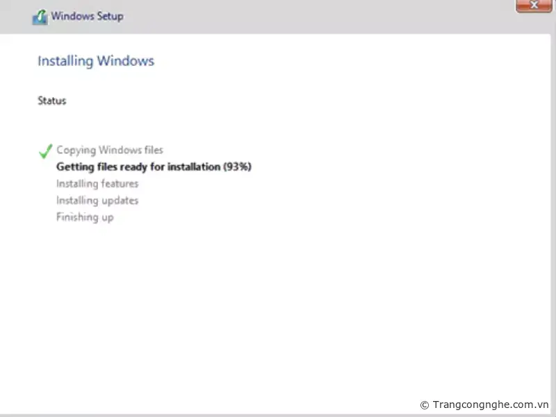 Tiếp đến quá trình cài đặt sẽ diễn ra ngay sau đó. Quá trình này sẽ diễn ra trong khoảng 10-15 phút, tùy thuộc vào cấu hình máy tính nhanh hoặc chậm.